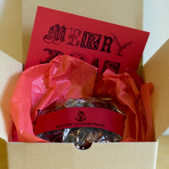 ダークフルーツケーキをたっぷりお楽しみいただける、直径12cmのホールケーキに、オリジナルクリスマスカードを添えてセットにしました。