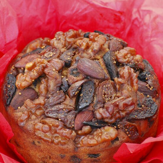 じっくりラム酒に漬けこんだ有機ドライフルーツとナッツを贅沢に使った、スパイスの香り高い「ダークフルーツケーキ」。